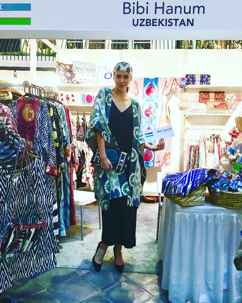 Arlington, Texas hosted the first Sister City location of the internationally renowned International Folk Art Market, Santa Fe rated the Best Art Festival in America by USA Today. Bibi Hanum was selected to participate in this pioneer market for the first time. The market took place at the University of Arlington Campus and featured Bibi Hanum along with other 34 artists from around the world. The market began with the on June 16 where guests enjoyed the evening party with nice music and food and had the opportunity to meet the artists and shop their collections. For two days Bibi Hanum presented its ethnic collection with ikat robes, kaftans and embroidered suzani accessories.